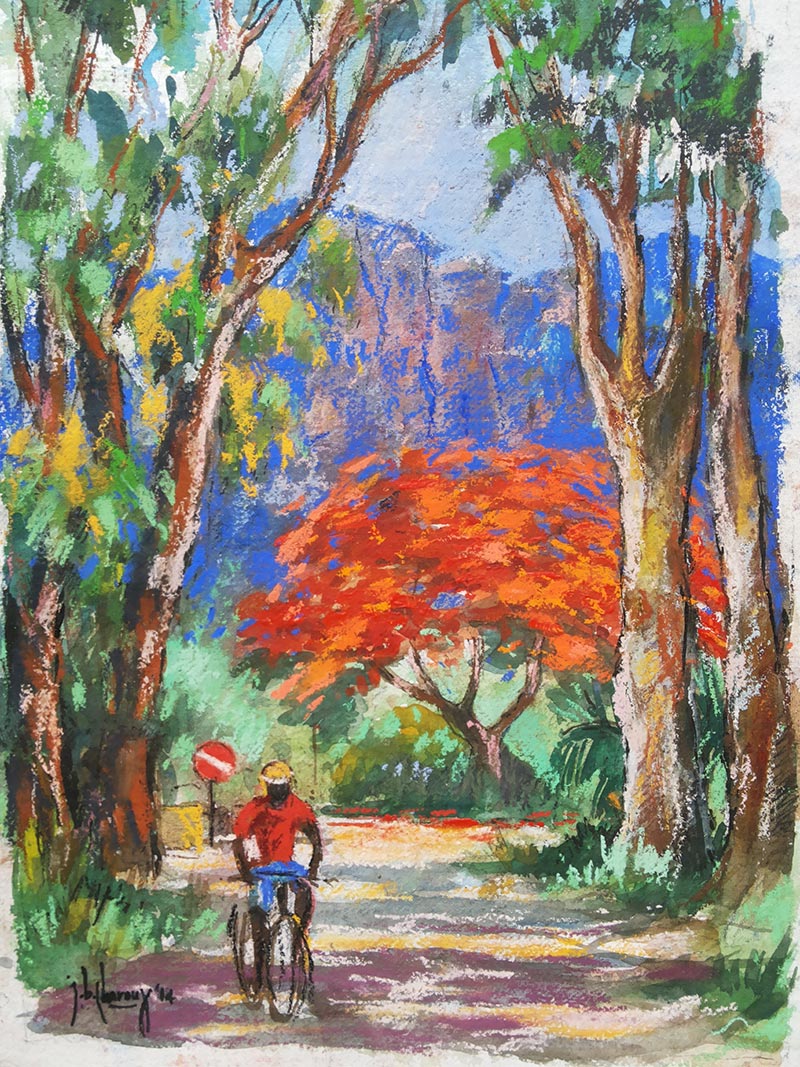 NO 1. Flamboyant a la route Bassin. 45 x 31cm. Aquarelle & pastel sur papier Saunders Waterford
