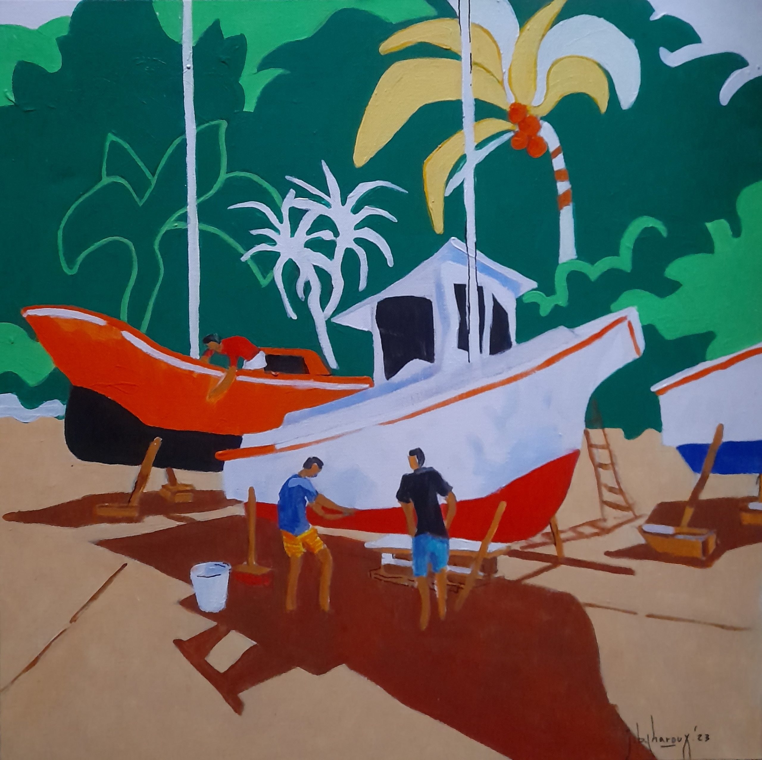 NO 17. Still life with a landscape I. 60×60 Acrylics on canvas