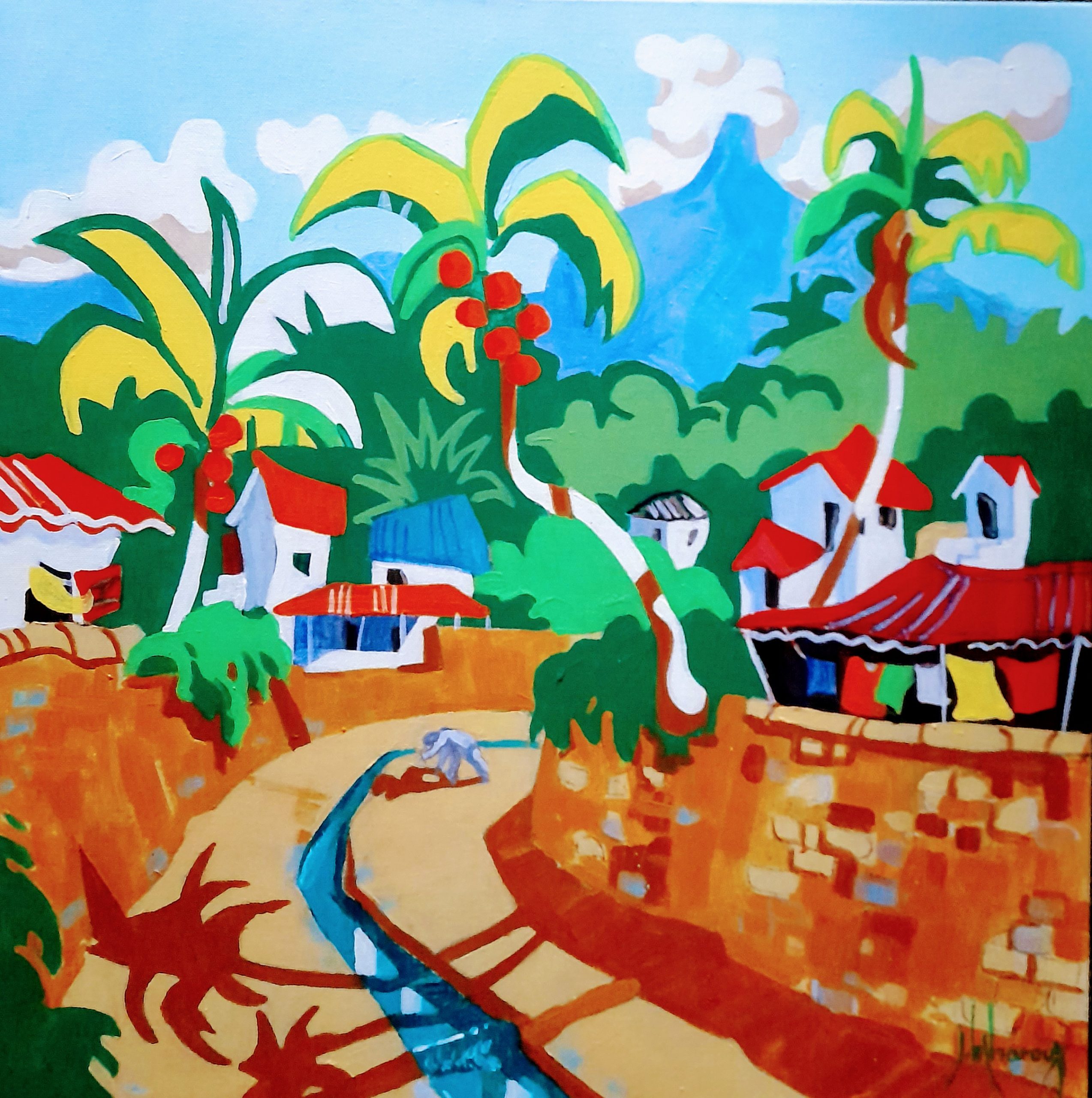 NO 18. Still life with a landscape II. 60×80 Acrylics on canvas