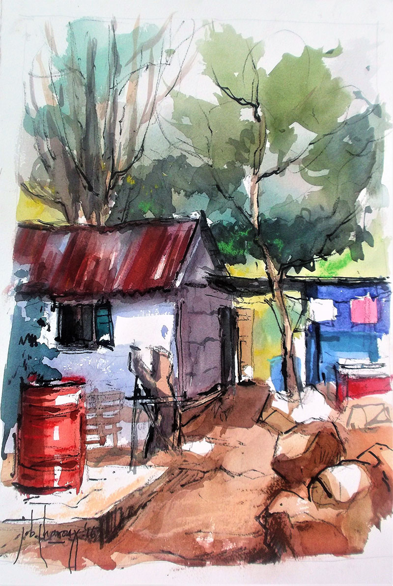 NO 22. Mangue Vert Doux – Bambous. Dim 45 x 31 cm. Aquarelle sur papier Saunders Waterford.