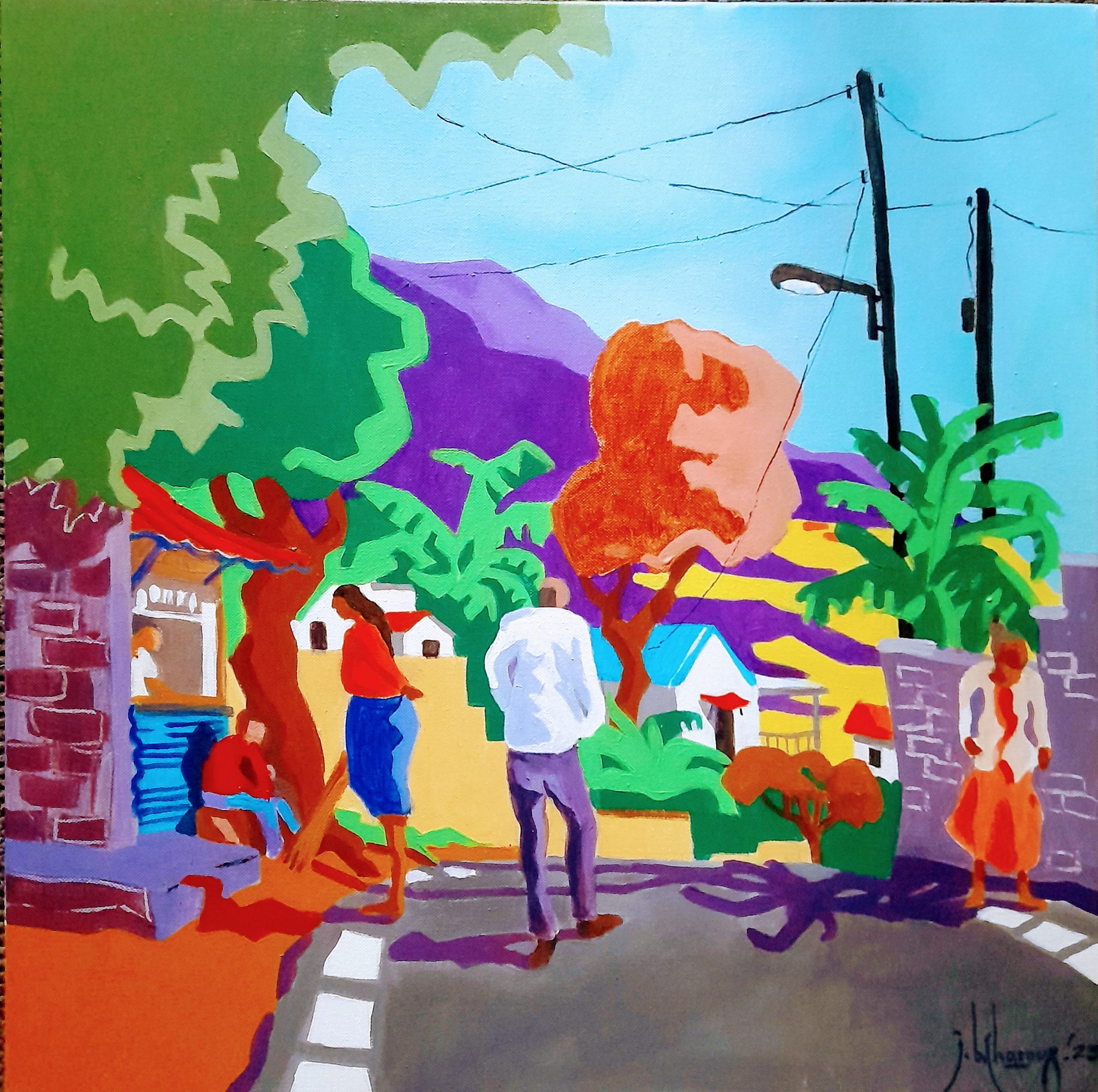 NO 4. Flame trees in full bloom towards Albion. 60×80 Acrylics on canvas